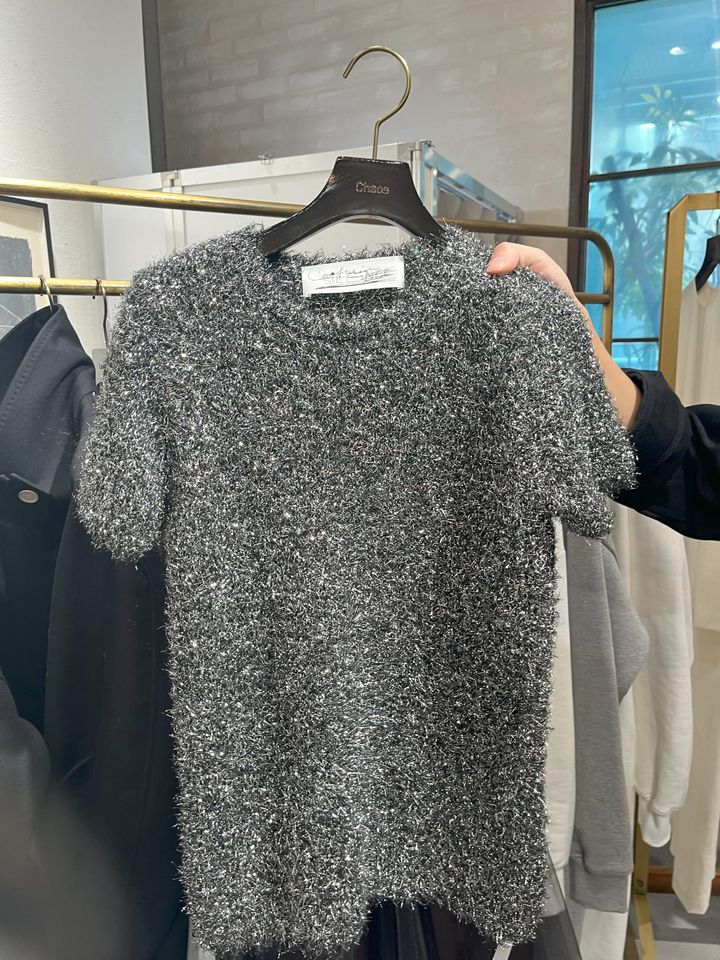 クローゼットにあるだけでワクワクするような、イベントの多い冬に備えて手に入れたい1枚で主役になるニット。上品なラメ使いで色も落ち着いているので、ボトムスのカラーを選びません。シルエットはタイトですが、ざっくり編み上げているので柔らかい風合いで着心地もGOOD。シルバーのほかに、ゴールドもあります。