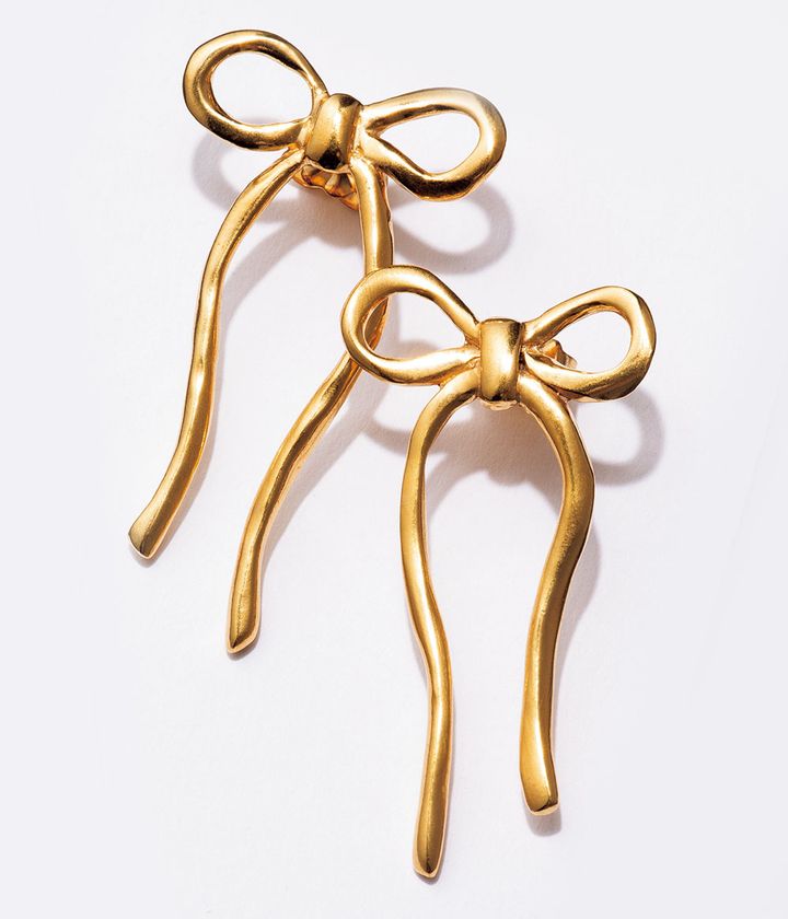 顔周りがパッと華やかになるロングピアスでドラマチックに。ピアス¥41,800(カラ・ユ/ショールーム ロイト)