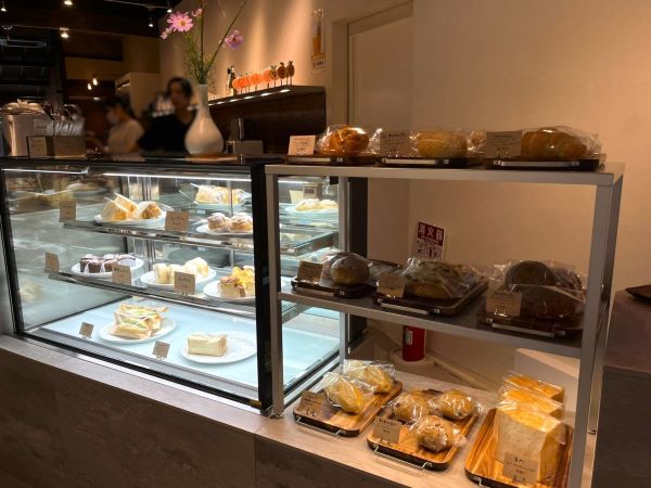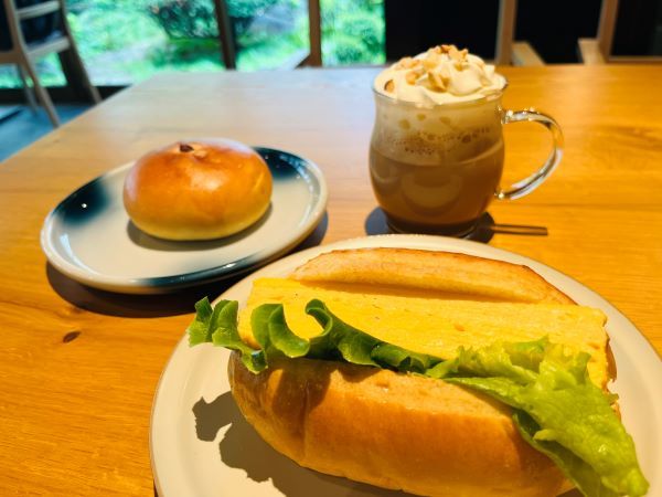 セットが気になり伺ったのですが、お店の方から「本日からサンド系も始まりました!」とご紹介いただいたので、今回はテイクアウト商品とドリンクを店内でいただくことにしました。朝にピッタリなパンやケーキなどがあり、自家焙煎コーヒーをはじめ柑橘ジュースなどドリンクの種類も充実していましたよ。