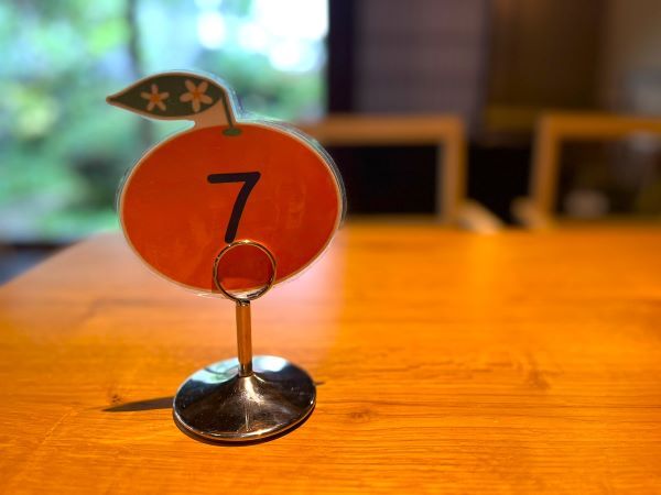 選んだ商品やドリンクは、お席まで持ってきていただけます。番号札が「みかん」で可愛い・・・☆