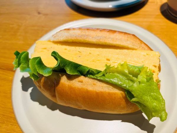 とても分厚いたまごに惹かれて選びました。3センチ幅くらいありましたよ!ふわっとしているけれど食べ応えある自家製パンと分厚いたまご焼きで、これ一つでお腹いっぱいになりました。