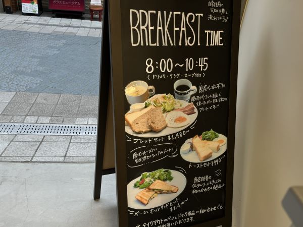 8:00~10:45まで「BREAKFAST TIME」で、地元の食材も使用した美味しそうなセットがありました。そのほか、テイクアウトのパンやドリンク商品でも店内を利用できるようになっていました。