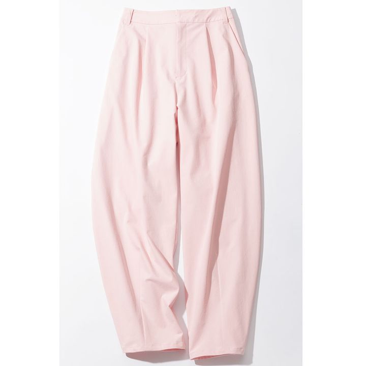 モードパンツを軸に憧れのピンクのワントーンに挑戦♡ コーデにオシャレなリズムが作れるランダムタック。ピンクのワントーンはラメニットでエッジーにふって。