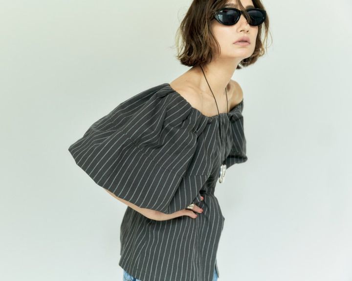 パフスリーブとドルマンスリーブの掛け合わせのような袖のシルエットが秀逸。パフスリーブにありがちな甘さやコンサバ感がなく、ウエストインもしやすい。女性らしくカッチリし過ぎないニュアンスのあるデザインが素敵で、マニッシュなシャツを敬遠しがちな方でもトライしやすい。