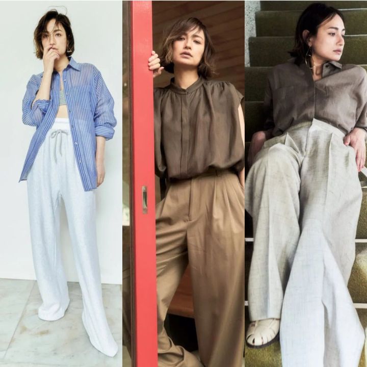 「40代以上のスタイリングで一番大切にしたいのは、清潔感と適度なきちんと感。ラフなコーデのときこそ大切にしたいポイント。それを踏まえると、シャツとブラウスって本当に便利。今回は特に着るだけでキマるものだけをピックアップしたので、難しいことは考えず、どんどん着てほしいですね」と加藤かすみさん。