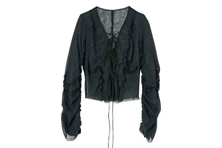 レースとシャーリングの合わせ技が新鮮。ブラウス¥14,850(メゾンスペシャル/メゾンスペシャル 青山店)