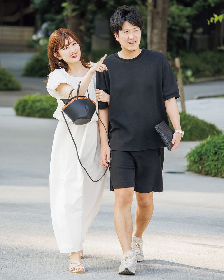 東京から博多に引っ越してきて1年。休日は夫婦で食べ歩き。体型維持のため、自転車で公園に行ったり、キックボクシングに通ったりしています。ランチデートはemmiのワンピで。毛穴ケアに特化したスモアの洗顔やシン ピュルテのマルチベネフィットオイルはジェンダーレスに使えて、洗面台にもなじむパッケージがいい。
