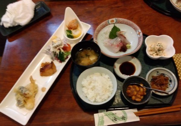 ちなみに別日のランチは天ぷら、照り焼き、カルパッチョのほかサクサクの白身フライ。 副菜はナスの煮びたしではなく蓮根の梅肉和えサラダ風でした。いつ食べても、間違いなく美味しい。 これでコーヒーが付いてきて1600円はどう考えても安い!!