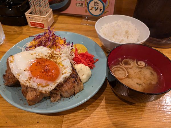 【堺筋本町】絶景!目玉焼きと分厚いチャーシューの定食「餃子とチャーシュー エソラ」