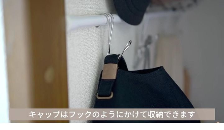 Samiaさん宅では、クローゼットの側面につっぱり棒でフックが掛けられる場所を作っています。