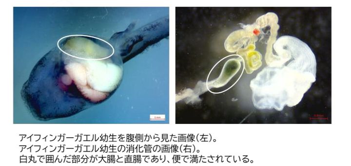 研究チームは飼育を通した追跡観察から、本種のオタマジャクシが大きく成長するまで固形の便を排泄しないことを確認しました。