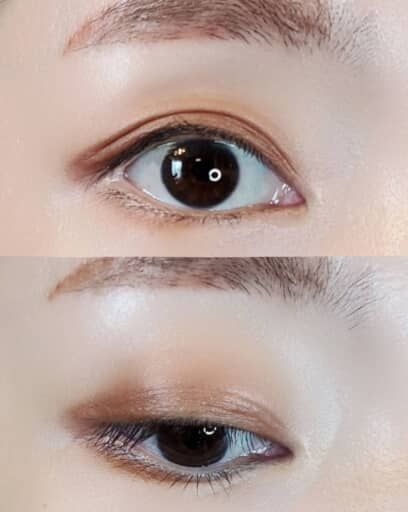 また、上写真の下側のようにいつものアイシャドウや濃いめのアイシャドウの上から重ねると色みをまろやかに見せてくれる効果があるので、優しい印象に見せたいときや濃くつけすぎてしまったときにも活躍してくれるでしょう。