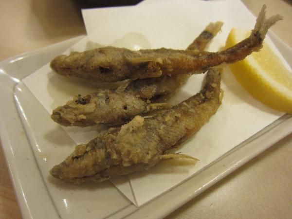 メヒカリのから揚げ。サクっと揚がって、頭から、尻尾まで食べられて、淡泊だけれど、旨味があって、美味しかったです。