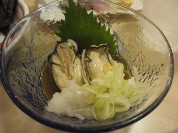 蒸し牡蠣のポン酢和え。ふっくらで大粒な牡蠣で、旨味いっぱいでした。