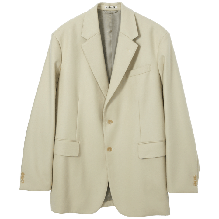 「上質なSuper130’sウールを二重組織でしっかりと織り上げ、縮絨加工を施した薄手のメルトン素材で、秋冬のスタイリングを軽やかにする、オーラリーらしい綺麗な色みがポイント。古着などと合わせて、トレンドのグランパコア風のスタイルもオススメです」(オーラリー)