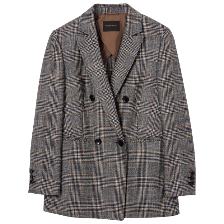 「ダークブラウンベースのしなやかなタッチのグレンチェック柄テーラードジャケットです。ボディはゆったりとしたボクシーシルエットで4パッチポケットデザイン。ドゥロワーらしい上品さでブラウスとの相性が抜群です」(ドゥロワー PR 藤田 幸さん)
