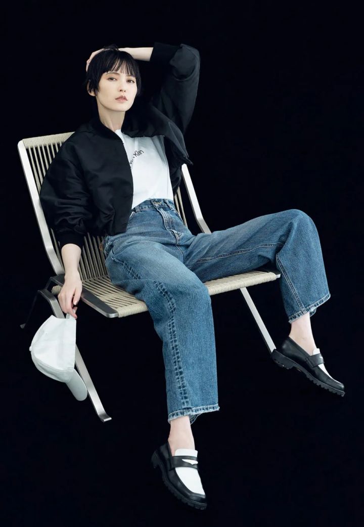 第4位は、やっぱりいいよね、なシンプルデニムスタイル。ボリュームのあるLeeのワイドデニムに、合わせたのはコンパクトなショートブルゾンとカルバンクラインのロゴT。一見王道なカジュアルスタイルだけど、アウターの丈感やローファーを合わせた足元など、随所に今のムードを感じるバランスをちりばめているのがポイント。