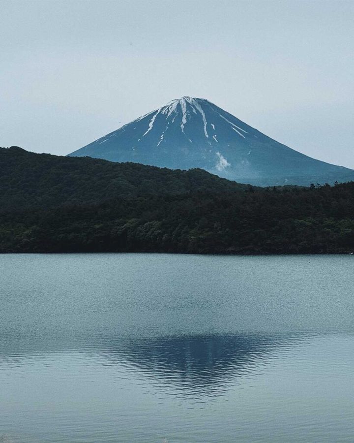 ランニング中に見つけた河口湖に映る富士山の景色に感動。