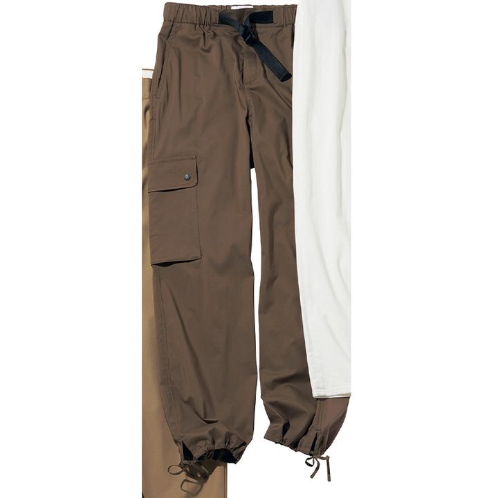 汗をかいても体をドライに保てるカーゴパンツは太すぎないシルエットでコンパクトダウンとも好相性。運動会後、そのまま家族でご飯に行けちゃう都会派スポーティが気分!