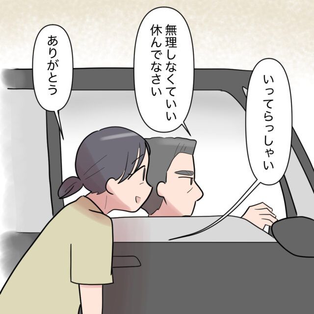 「いってらっしゃい」と見送るよしこさんに、それまで「嫁が我慢すればいい」と言う考えだった義父が「無理しなくていい。休んでなさい」と気遣いました。
