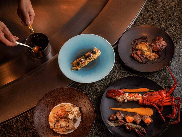 最上階の景色とともに、目の前で焼き上げる上質な食材が堪能できる鉄板焼『恵比寿』。同店では、職人が秋の食材をエンターテイメントを意識したフレンチスタイルに仕上げる特別なコースでゲストをもてなします。