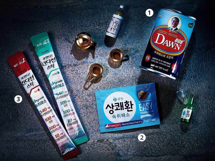 韓国ではソジュなど度数の高いお酒をストレートで飲むことが多いので、二日酔い対策のアイテムがとにかく充実。