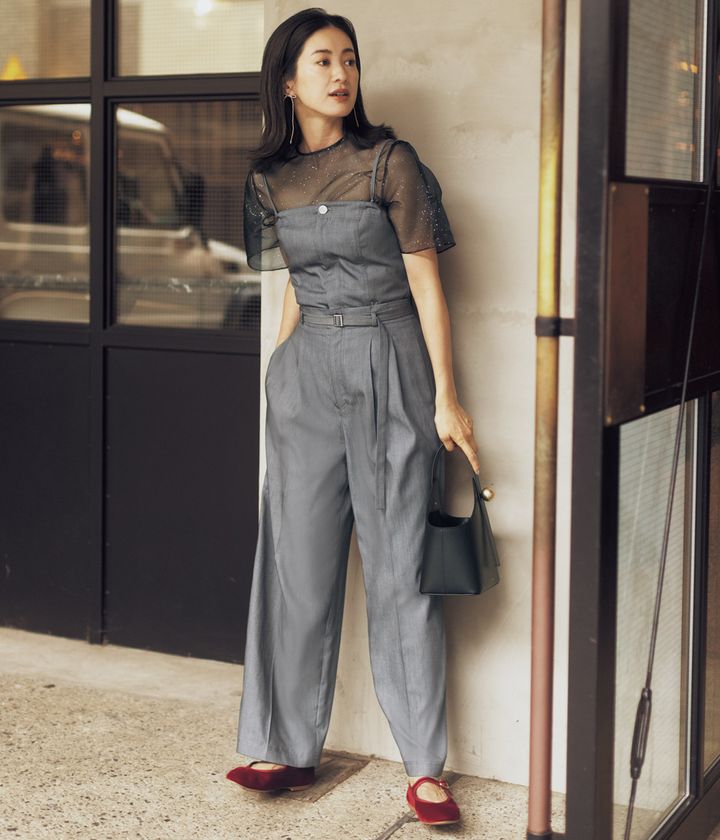 シアー、キラキラ、旬の赤…甘さを盛ってもハンサムにキマる【ベアサロペット】