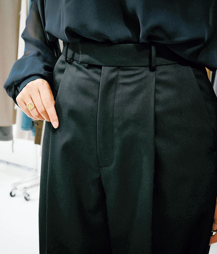 年齢とともに腰の張りが気になりはじめ、ハイウエストデザインでウエスト位置を高く見せたり、落ち感素材で滑らかな曲線を意識したりと日々格闘中。国産の大人ブランドが腰張りには合う気がします。