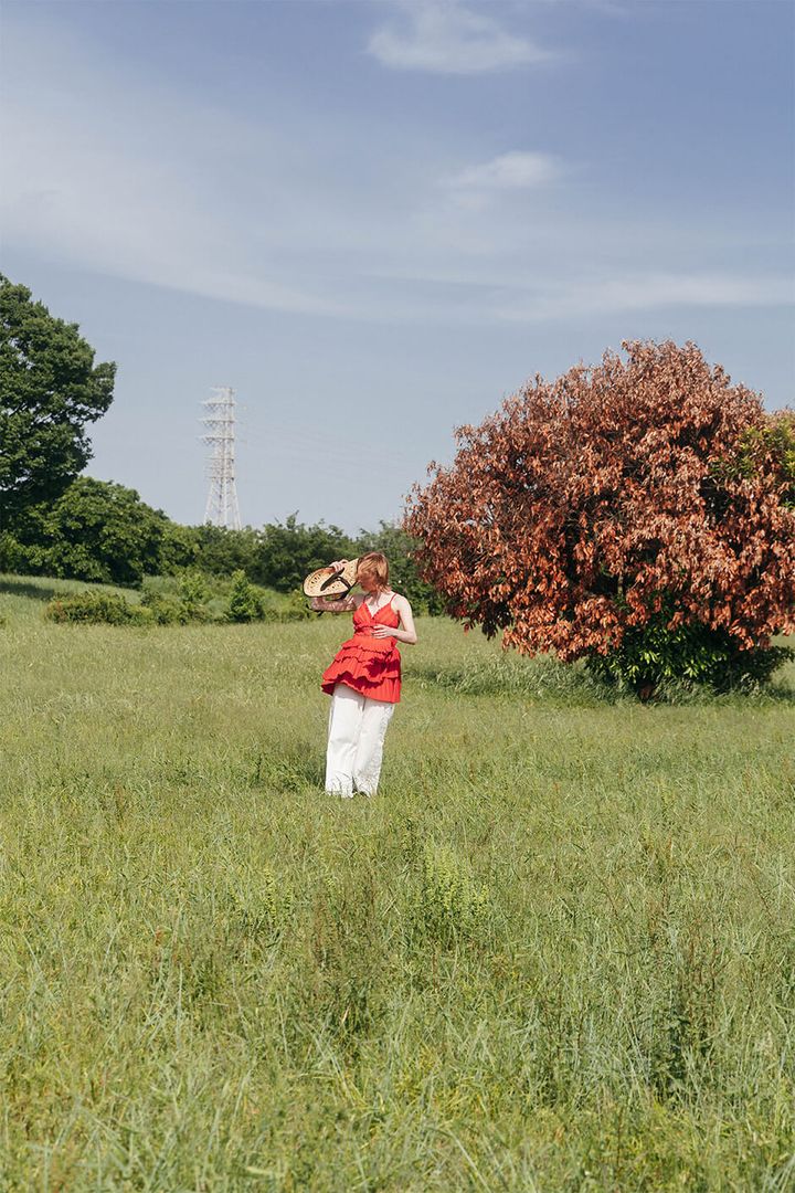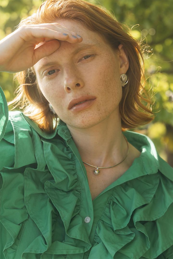 top and trousers by SEA NEW YORK, earrings by PUPIL CASKET, vintage ring by SALERS TOKYO