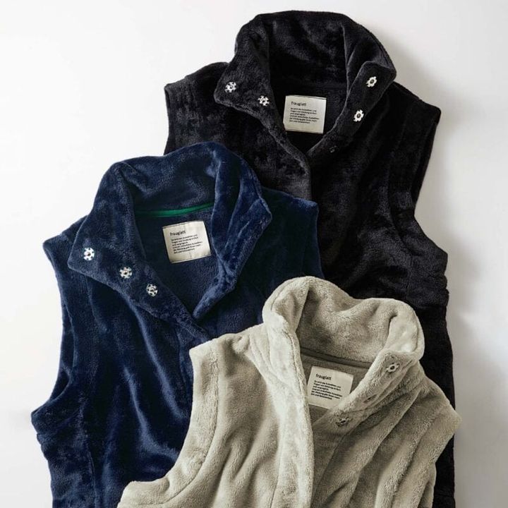 ブラック、ネイビー、ベージュの3色展開。大人の女史会コラボ 艶めくとろみボアベスト¥3,980/フラウグラット(フェリシモ)