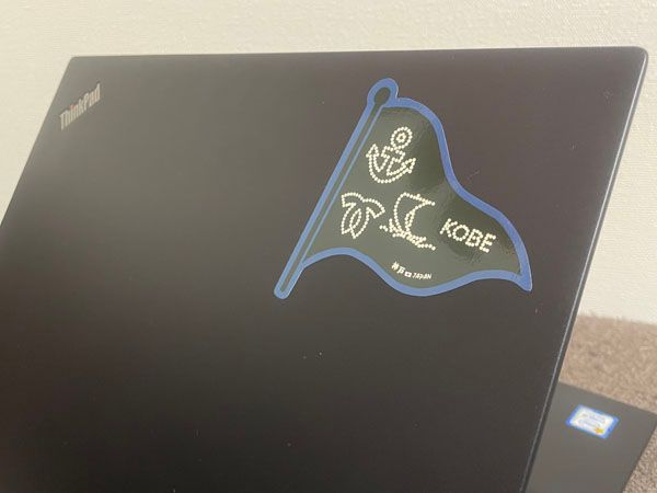 私が大好きな山麓電飾があしらわれたステッカーも、お店のオリジナル商品です。 「ステッカーさんろくでんしょく」(440円)は、防水加工・UV加工が施されているので、日の当たる場所や外で使うグッズに貼っても大丈夫です。 私はノートPCに貼ってみました。