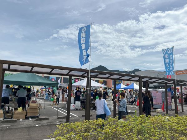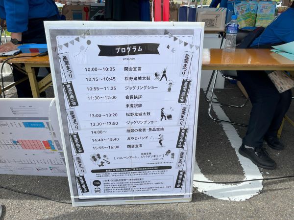 クールス・モールというショッピングセンターの駐車場で開催されていました。車は同じ駐車場内の一般駐車スペースに空いているところがあったので、そこに止めることができました。 今年は東温市誕生20周年記念事業と一緒に開催されており、産業まつりと同じ会場で「とうおんマート」というイベントも開催されていたので、たくさんのブースがありとても賑わっていました。