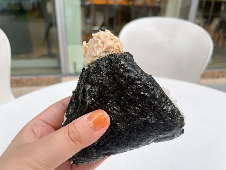 1つだけで、朝ごはん、お昼ごはんにもなるくらいの大きさがあります。 食べすすめても崩れることなく、自分で作るのとはお米からして違う絶妙な味わいで、プロが作るおにぎりってこんなに美味しいんだ!と感動。