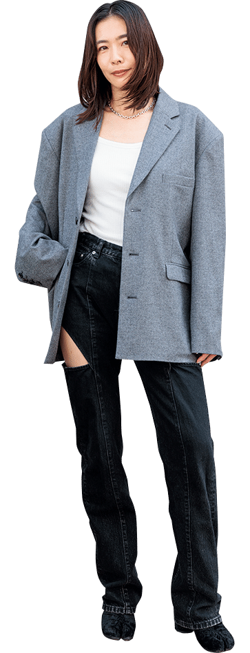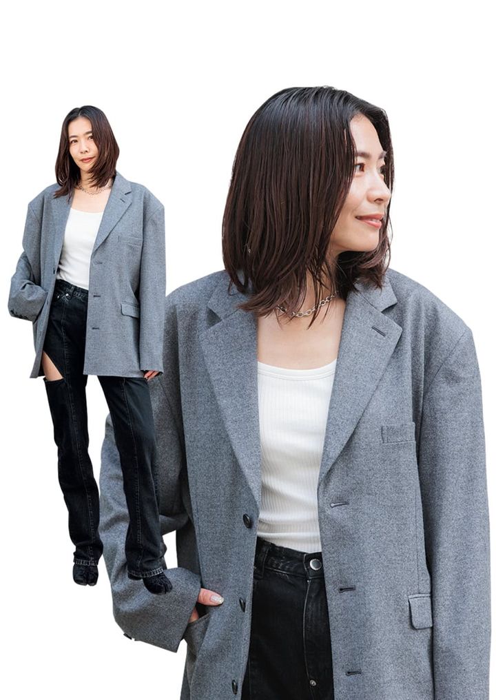 他はシンプル!着るだけで洒落るカシミアのオーバーサイズジャケット【小森 愛さんの私服スナップ】