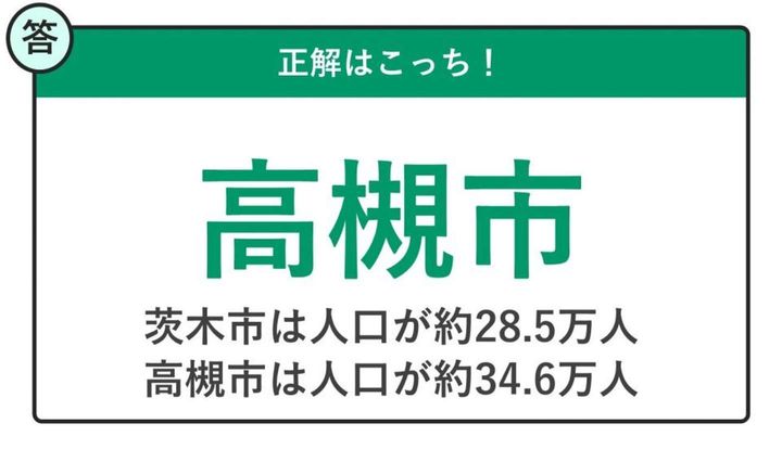 3. 【どっちクイズ】大阪府で人口が多いのはどっち? 茨木市 or 高槻市