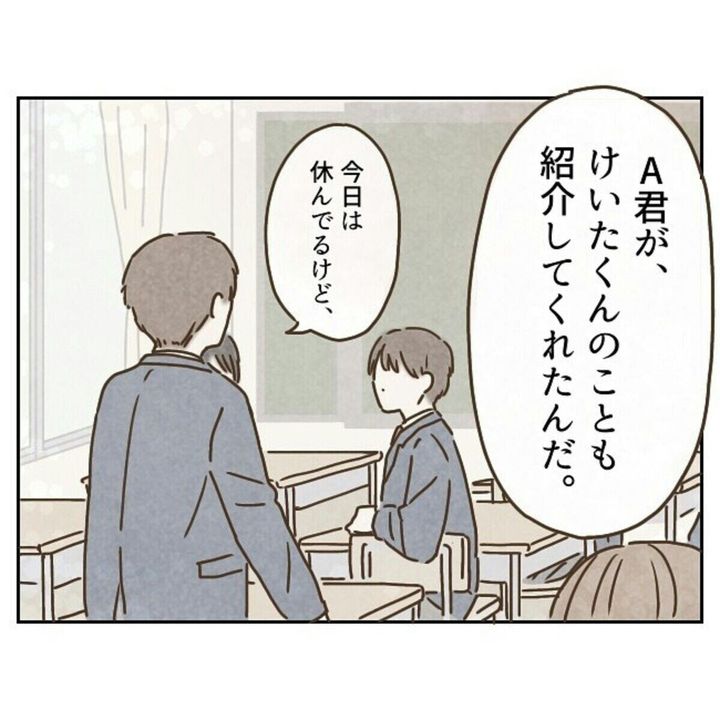 無事にクラスになじむことができたけいたさんでしたが、不思議でした。なぜ、みんな自分に話しかけてくれたのか…。けいたさんがクラスになじめることができたのは、なんとAくんのおかげだったようです。