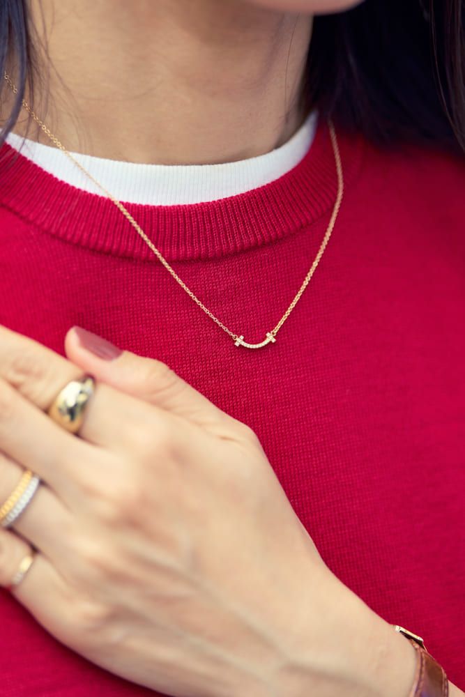 ユニクロのニットは色出しがキレイなので毎シーズン買い足しています。紅葉を見に行く日には深い赤のニットで秋らしく。遠足気分を味わうためのデニムにスニーカーを合わせたカジュアルコーデなので、大人っぽいジュエリーを合わせてバランス良く仕上げました。