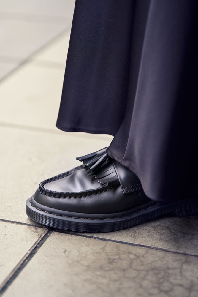 ユニクロのサテンスカートは年中履ける素材が嬉しい!丈が長い方が良かったのでLサイズを購入。今時期は、足元をローファー+ソックスにして楽しみ、寒くなったらブーツを合わせたいなと思っています。今日のコーデは、ブラックのワントーンですが、サテンの光沢感が入ることでコーデに奥行きが。普段はあまりつけないカチューシャもモード感のあるスタイルなら甘くならずに取り入れられるかなと思いつけてみました。