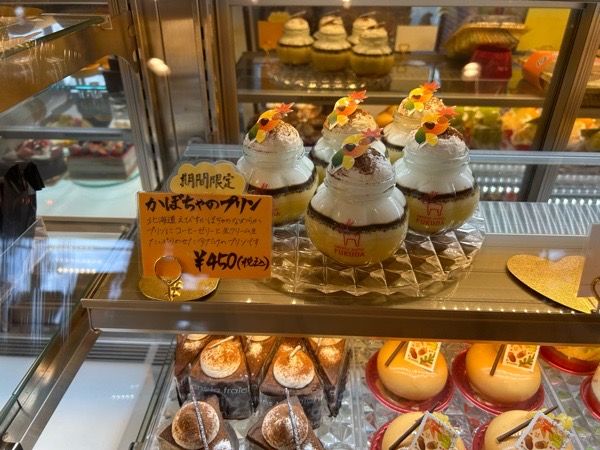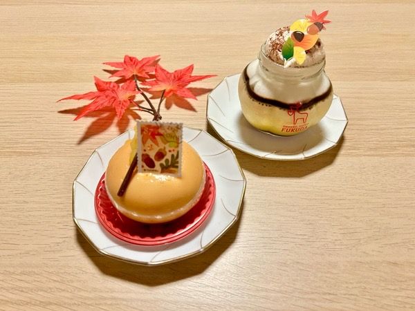 ケーキは、ハロウィン気分満点のかぼちゃのプリン(10月限定)とオートンヌ。