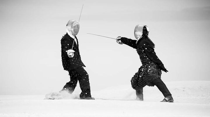 展示では、「CFCL」のVol.8 Collectionで登場した「ENCHANT」シリーズのアイテムを着用し、砂浜でフェンシングをする姿を写した写真を公開。