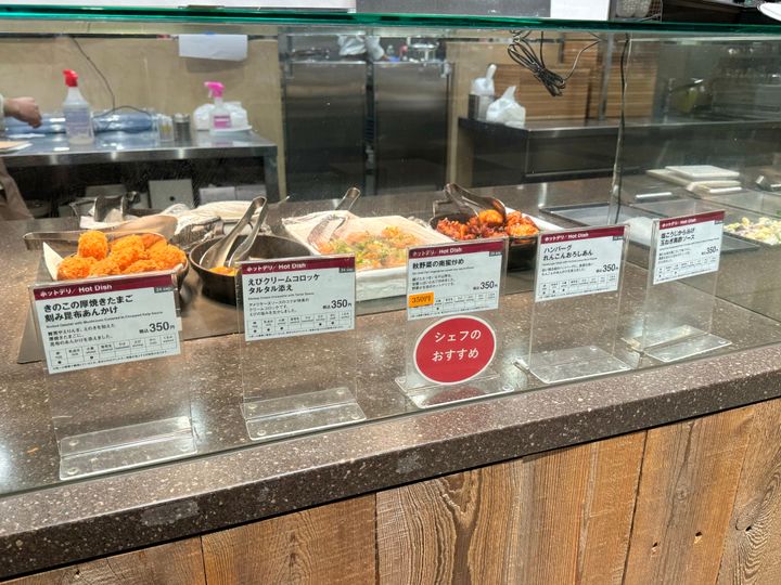 カウンターで、店員さんに選んだデリを伝え、お皿に盛り付けてもらいます。