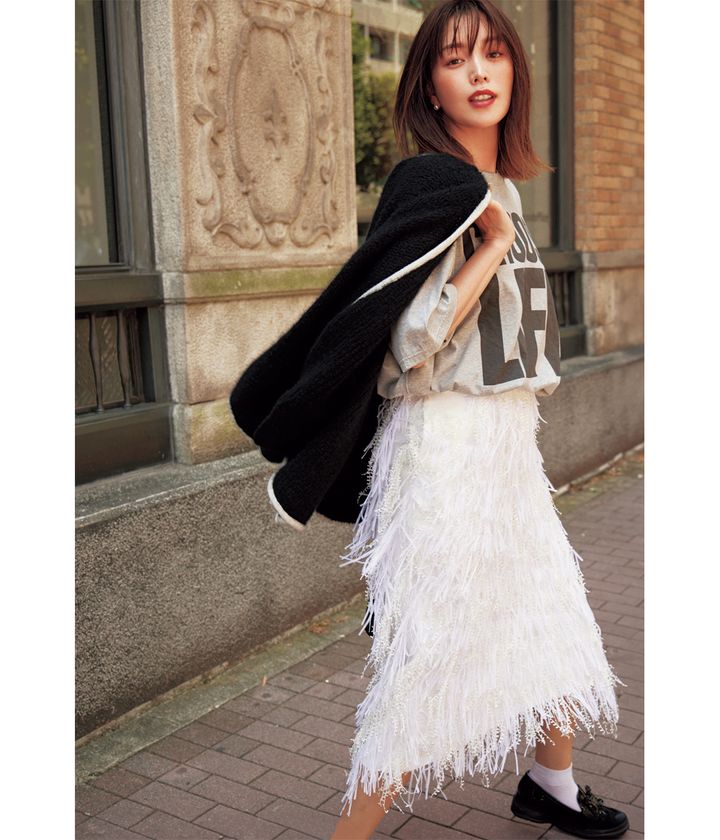 4位 秋スカートの新勢力【シャギータイト】でTシャツコーデをレディに仕上げて