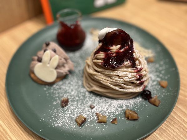 秋といえば、モンブラン!スイーツメニューには「ミッフィーと秋のモンブラン」(1,590円)もありました。ミッフィーもちょこんとのった和栗のモンブランとチョコクリームのタルトプレートです。