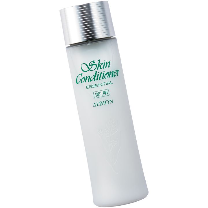 スキコンは私にとって肌がゆらいだときのレスキューアイテム。吹き出物ができたらすぐに投入し肌を鎮静。キメも整い肌力が上がるので手放せません。混合肌の20代の息子も、季節の変わり目の肌荒れやかみそり負けで赤みが出たときにも愛用中。軽やかなテクスチャーや爽やかな香りもお気に入りの様子。年齢、肌質、性別問わず使えるのでシェアコスメとして最適です。薬用スキンコンディショナー エッセンシャル N[医薬部外品]165ml ¥5,500(アルビオン)
