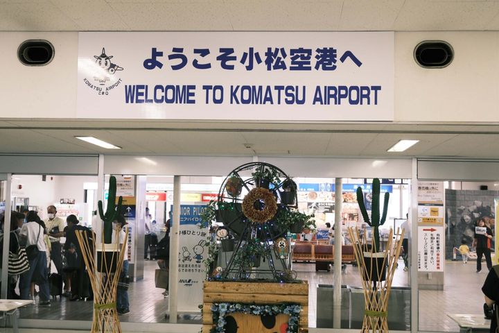 羽田空港から小松空港までは、飛行機で約1時間のフライト。小松空港から金沢駅まではバスで約45分。