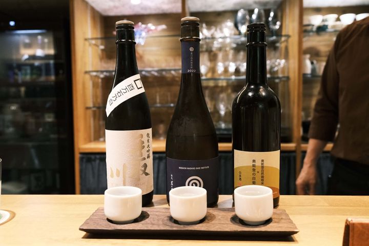 ホテルのすぐ近所にあった日本酒バルで金沢の地酒を飲み比べし、ホテルに戻って再び酒盛り。