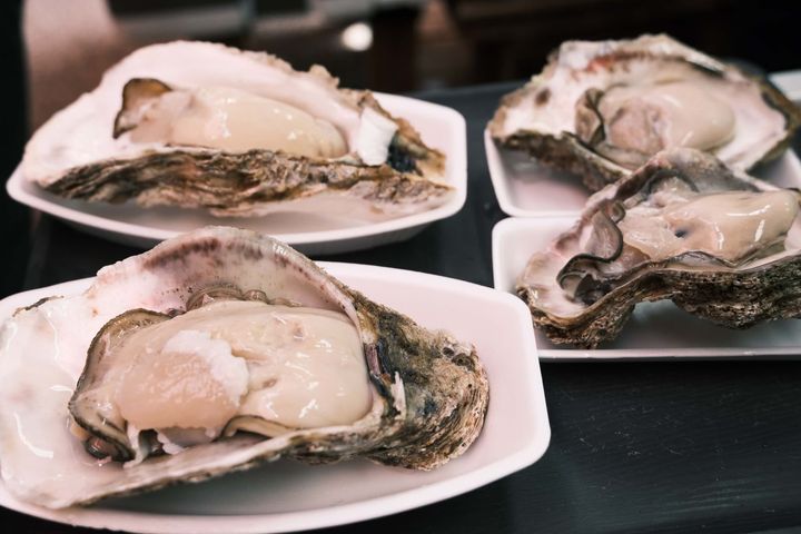 生牡蠣やエビ、バイ貝、金沢おでんに海鮮丼までたいらげて、大満足の大満腹。