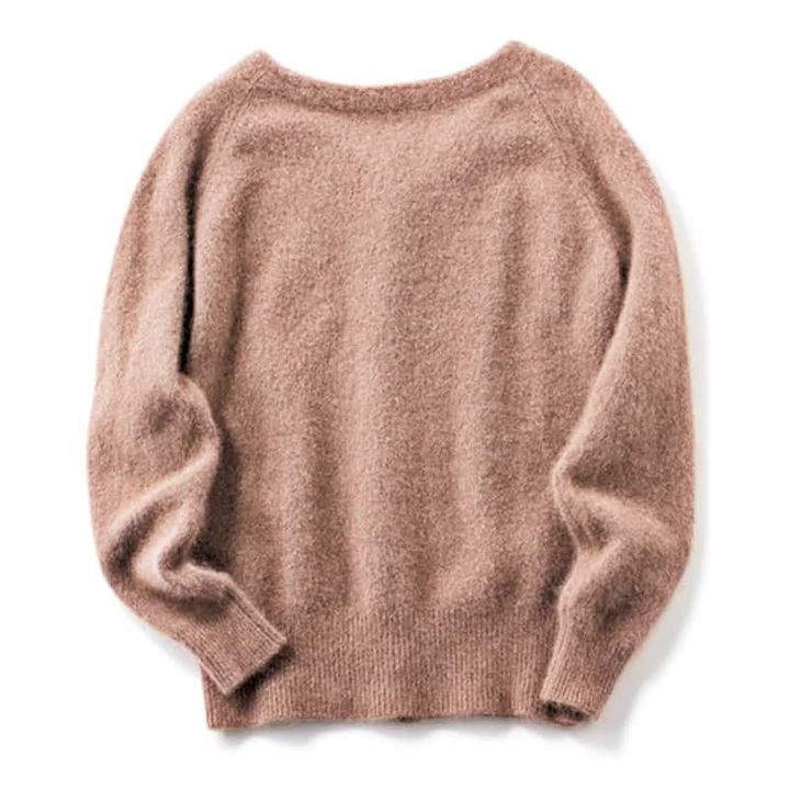 バックにはボタンがあり、カーデとしても使える1枚。ニットトップス¥22,000(マイカ アンド ディール/マイカ アンド ディール 恵比寿本店)