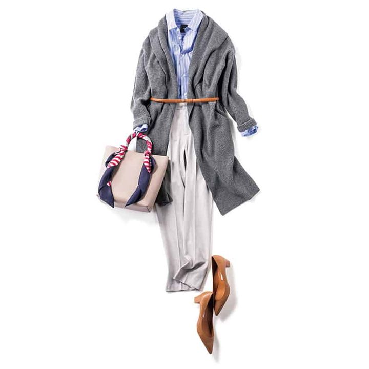 3. 濃淡グレー&ブルーでまとめた、デキる女のオフィスコーデ【真冬の着回しDiaries Part③】