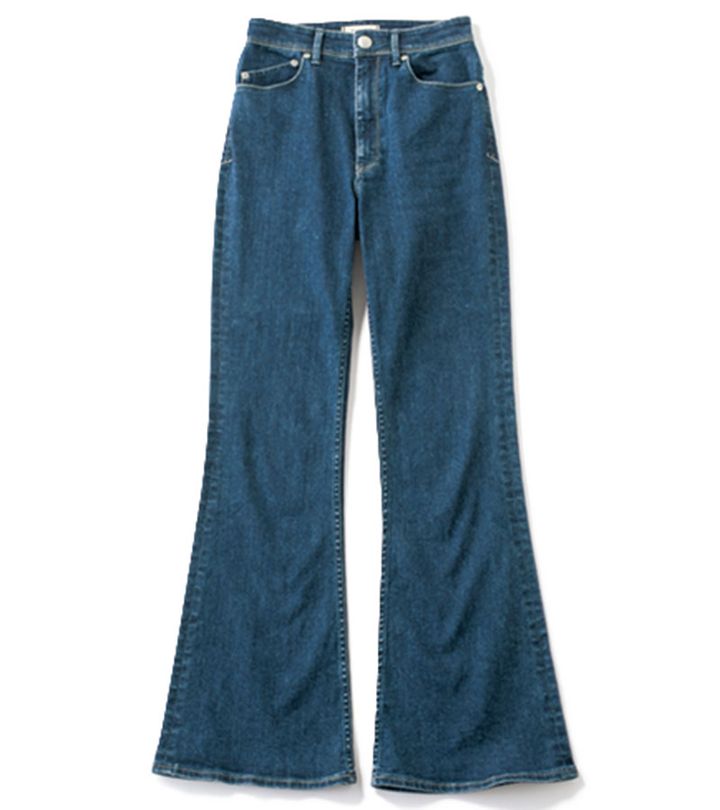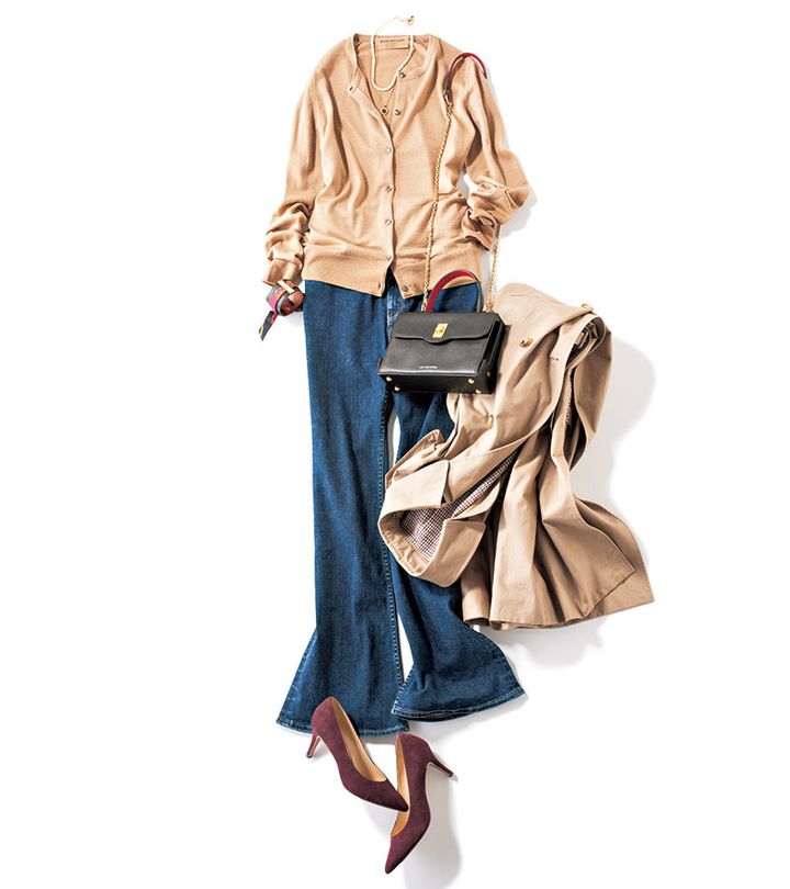 トラッドスタイルに欠かせない濃色デニム。今季はフレアシルエットが正解。パンツ¥24,000(ヤヌーク/カイタックインターナショナル)